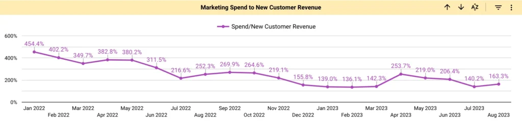 The overall CIR improved by 77%, and the new user CIR improved by ~61%, decreasing from an average of 380% in Q1-2022 to 140% in Q3-2023.